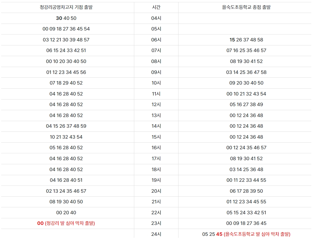 | 청강리공영차고지 | 04:30 | 23:00 |