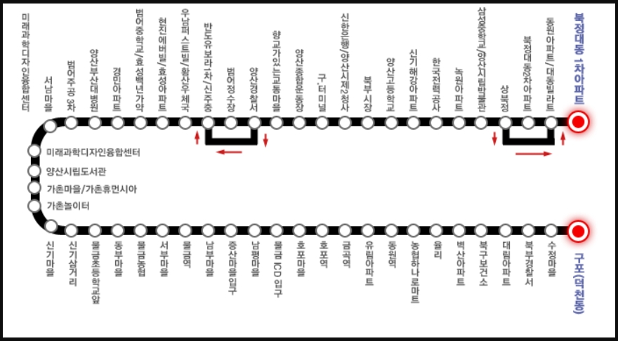 부산 덕천역 ↔ 양산 북정근린공원: 약 60분