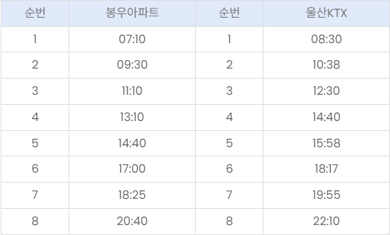 <양산 봉우아파트 출발>(KTX울산역 행)