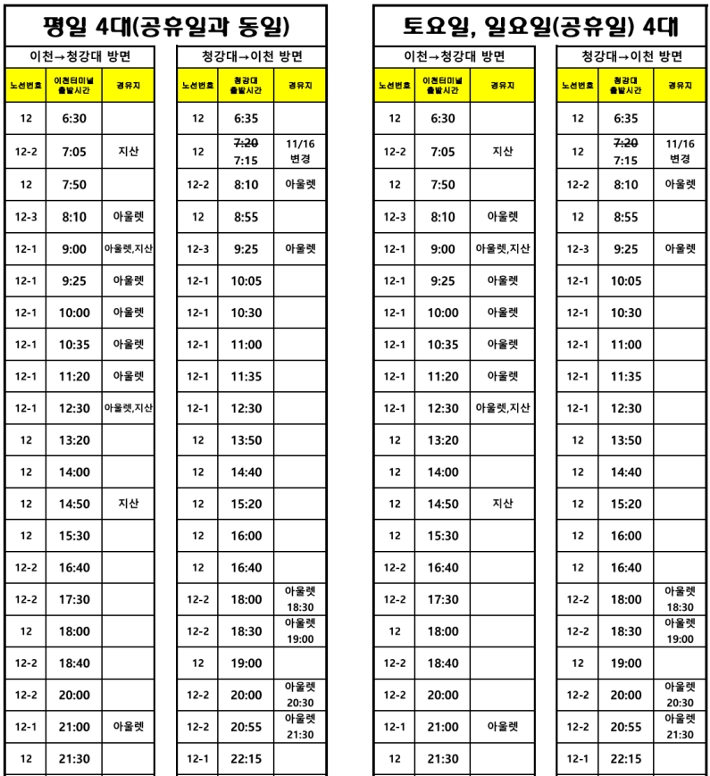 이천 12번 버스 시간표